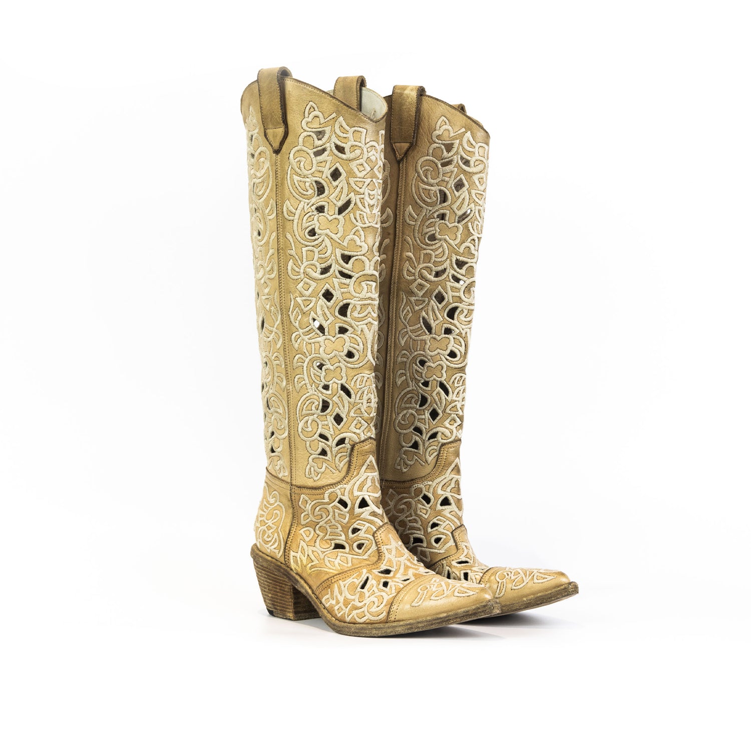 Stivale in vitello  tinto in capo con ricamo Made in Italy