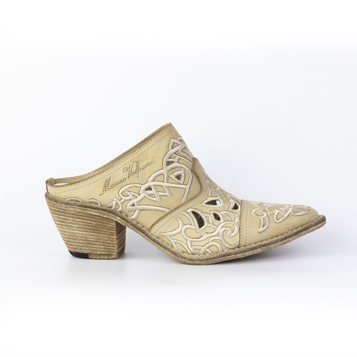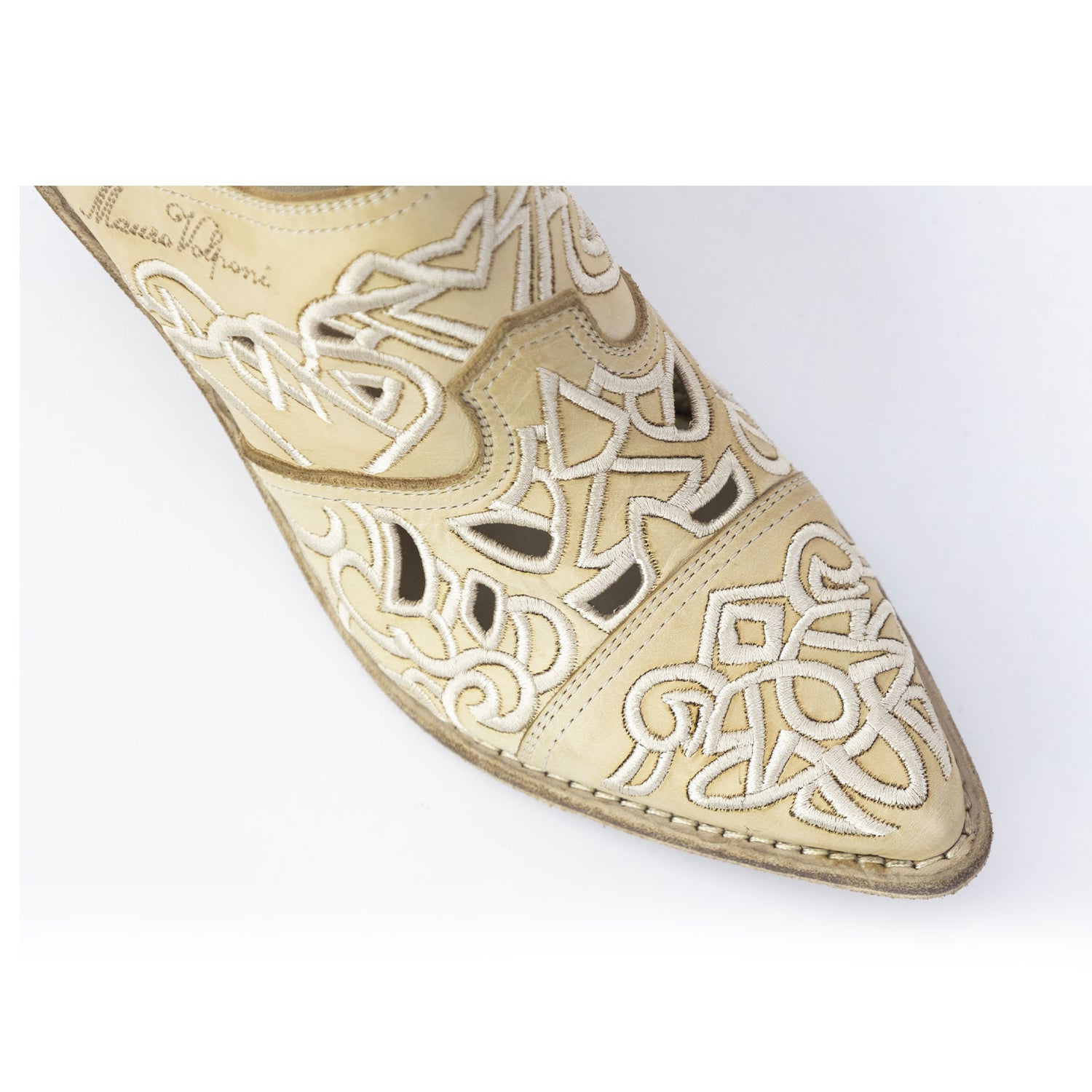 Sabot in vitello tinto in capo con ricamo Made in Italy