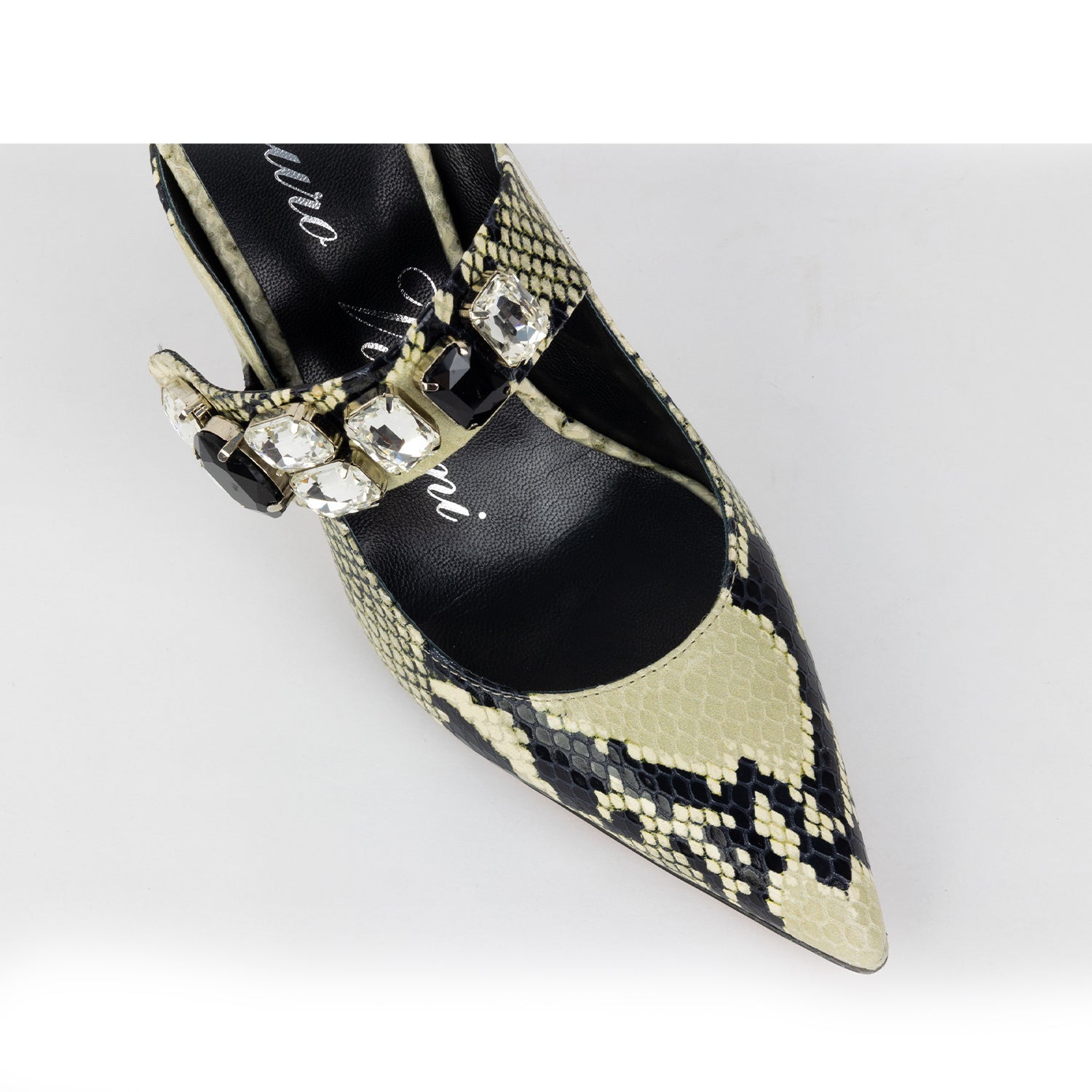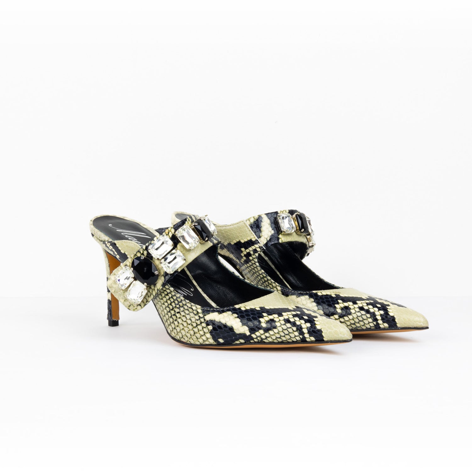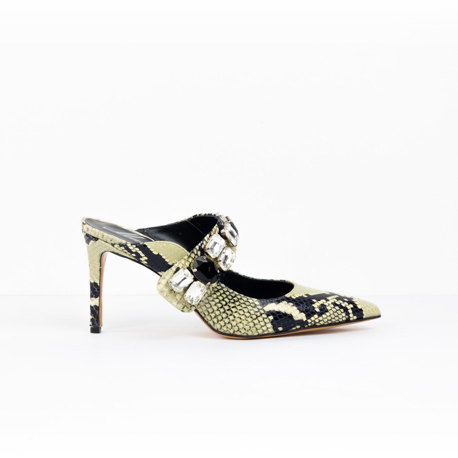 Sabot in vitello stampato fodera nappa con pietre T.8cm Made in Italy